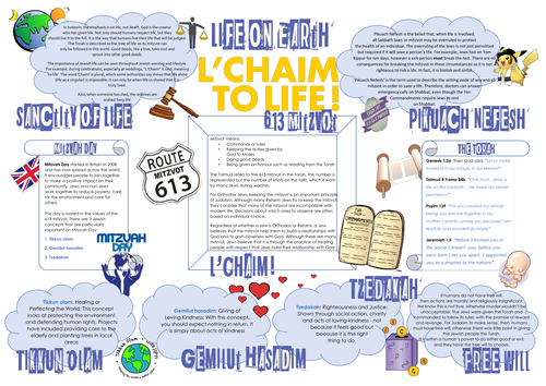 Judaism Life On Earth Learning Mat Revision Sheet For Sanctity Of Life Teaching Resources